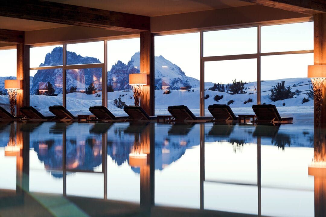 Just minutes from Madonna di Campiglio (in Pinzolo), the Lefay Resort & Spa Dolomiti combines modern architecture with eco-conscious luxury. Floor-to-ceiling windows in spacious suites bring the snow-capped peaks indoors, and the expansive wellness area features thermal pools, saltwater grottos, and custom holistic therapies. A dedicated concierge curates everything from private ski guides to helicopter tours of the Brenta massif.